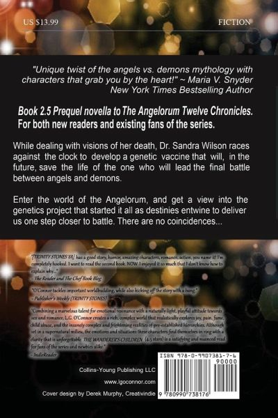 Book 2.5: Prequel novella to The Angelorum Twelve Chronicles. For both new readers and existing fans of the series. Save the One who will save them all. Enter the world of the Angelorum for a glimpse into its origins as destinies entwine to deliver us one step closer to battle ... Stolen as an infant by Achanelech, the Archdemon of Fire, Samuel has lived in his kidnapper's dungeons for over a century. Unaware of his angelic origins, he is persuaded to help capture his Nephilim brethren in exchange for a longer leash and a chance to plot his own escape. While dealing with visions of her death, Dr. Sandra Wilson races against the clock with research partner, Dr. Tom Peyton, and her Nephilim mate, Isa, to develop a vaccine that will save the One. With Isa ensnared in Achanelech's trap, and the Archdemon closing in on Sandra, it is Samuel who must risk his freedom to ensure the future of the Angelorum ... and the mother he never met. From L.G. O'Connor, award-winning author of Caught Up in Raine, comes the prequel novella in the epic angel & demon fantasy with forbidden and fated love, enemies-to-lovers, found family, witty banter, and sizzling romance that will leave you wanting more.