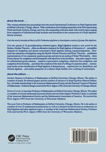 I. Infinitesimal Bialgebras, Pre-Lie and Dendriform Algebras. 2. Some Remarks on Nichols Algebras. Nicolas Andruskiewitsch. 3. The Coradical of the Dual of a Lifting of a Quantum Plane Nicolas Andruskiewitsch and M Beattie. 4. Representations of Two-Parameter Quantum Groups and Schur-Weyl Duality. 5. A New Proof of the Skolem-Noether Theorem. 6. Projectivity of a Relative Hopf Module over the Subring of Coinvariants. 7. A Brief Introduction to Coalgebra Representation Theory. 8. Some Examples of Integrals for Bialgebras. 9. Bi-Frobenius Algebras and Group-Like Algebras. 10. Bialgebras and Realizations. 11. Relatively Free Coalgebras. 12. Example of Almost Commutative Hopf Algebras Which Are Not Coquasitriangular. 13. Hopf Algebras of Dimension p2. 14. Support Cones for Infinitesimal Group Schemes. 15. Coalgebras from Formulas. 16. Fourier Theory for Coalgebras, Bicointegrals and Injectivity for Bicomodules. 17. Notes on the Classification of Hopf Algebras of Dimension pq. 18. A Hopf Algebraic Morita Invariant