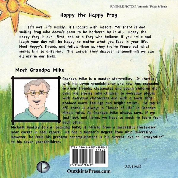 Meet Hoppy the Happy Frog Its wet...its muddy...its loaded with insects. Yet there is one smiling frog who doesn't seem to be bothered by it all. Hoppy the Happy Frog is our first look at a frog who believes if you smile and laugh your day will be happy no matter what you face in your life. Meet Hoppy's friends and follow them as they try to figure out what makes him so different. The answer they discover is something we can all use in our lives.