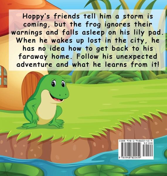 Hoppy's friends tell him a storm is coming, but the frog ignores their warnings and falls asleep on his lily pad. When he wakes up lost in the city, he has no idea how to get back to his faraway home. Follow his unexpected adventure and what he learns from it!