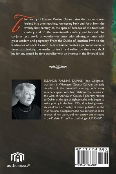 The poetry of Eleanor Pauline Dunne takes the reader across Ireland in a time machine, journeying back and forth from the twenty-first century to the span of decades of the twentieth century, and to the seventeenth century and beyond. She conjures up a world of wonder-at times with whimsy, at times with great wisdom and poignancy. From the Dublin of Jonathan Swift to the landscapes of Cork, Eleanor Pauline Dunne creates a personal vision of times past, inviting the reader live in and reflect on these worlds. A joy for any would-be time traveller with an interest in the Emerald Isle!
