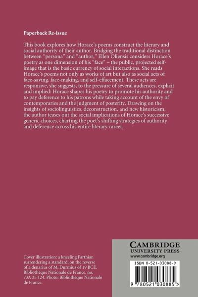 This book explores how Horace's poems construct the literary and social authority of their author. Bridging the traditional distinction between 'persona' and 'author', Ellen Oliensis considers Horace's poetry as one dimension of his 'face' - the projected self-image that is the basic currency of social interactions. She reads Horace's poems not only as works of art but also as social acts of face-saving, face-making and self-effacement. These acts are responsive, she suggests, to the pressure of several audiences: Horace shapes his poetry to promote his authority and to pay deference to his patrons while taking account of the envy of contemporaries and the judgement of posterity. Drawing on the insights of sociolinguistics, deconstruction and new historicism Dr Oliensis charts the poet's shifting strategies of authority and deference across his entire literary career.