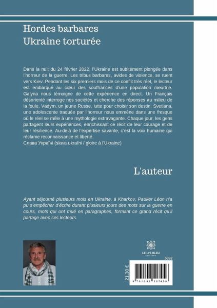 Dans la nuit du 24 février 2022, l¿Ukraine est subitement plongée dans l¿horreur de la guerre. Les tribus barbares, avides de violence, se ruent vers Kiev. Pendant les six premiers mois de ce conflit très réel, le lecteur est embarqué au c¿ur des souffrances d¿une population meurtrie. Galyna nous témoigne de cette expérience en direct. Un Français désorienté interroge nos sociétés et cherche des réponses au milieu de la foule. Vadym, un jeune Russe, lutte pour choisir son destin. Svetlana, une adolescente traquée par l¿horreur nous emmène dans une fresque où le réel se mêle à une mythologie extravagante. Chaque jour, les gens partagent leurs expériences, enrichissant ce récit de leur courage et de leur résilience. Au-delà de l¿expertise savante, c¿est la voix humaine qui réclame reconnaissance et liberté. ¿¿¿¿¿ ¿¿¿¿¿¿¿ (slava ukraïni / gloire à l¿Ukraine)