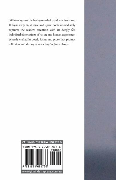 'Written against the background of pandemic isolation, Robyn's elegant, diverse and spare book immediately captures the reader's attention with its deeply felt individual observations of nature and human experience, expertly crafted in poetic forms and prose that prompt reflection and the joy of rereading.' - Janet Howie