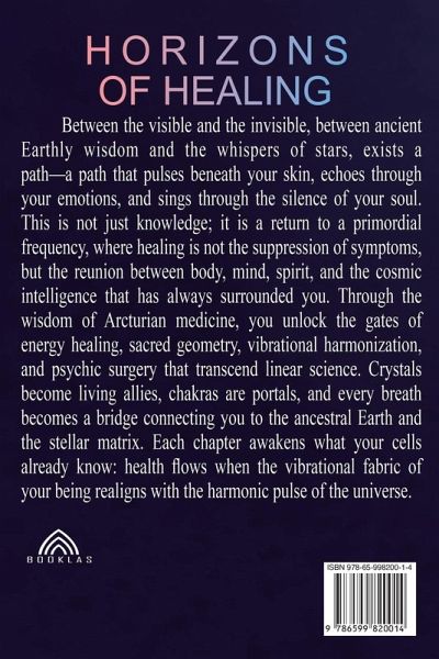 Horizons of HealingComplementary Arcturian MedicineSara WellsBetween the visible and the invisible, between ancient Earthly wisdom and the whispers of stars, exists a path-a path that pulses beneath your skin, echoes through your emotions, and sings through the silence of your soul. This is not just knowledge; it is a return to a primordial frequency, where healing is not the suppression of symptoms, but the reunion between body, mind, spirit, and the cosmic intelligence that has always surrounded you.Through the wisdom of Arcturian medicine, you unlock the gates of energy healing, sacred geometry, vibrational harmonization, and psychic surgery that transcend linear science. Crystals become living allies, chakras are portals, and every breath becomes a bridge connecting you to the ancestral Earth and the stellar matrix. Each chapter awakens what your cells already know: health flows when the vibrational fabric of your being realigns with the harmonic pulse of the universe.More than a book, this is an initiation-an invitation for your consciousness to step beyond what is known, to remember the cosmic lineage that pulses in your DNA. Each page calls you back to the forgotten alliance between humanity and the cosmos. The keys are here. You are the portal.