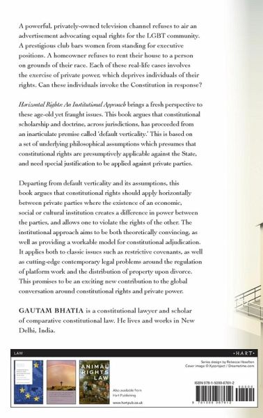 This book provides a new conceptual model for considering constitutional rights from a comparative perspective. A prestigious club bars women from standing for executive positions. A homeowner refuses to rent their house to a person on grounds of their race. Each of these real-life cases involves the exercise of private power, which deprives individuals of their rights. Can these individuals invoke the Constitution in response? Horizontal Rights: An Institutional Approach brings a fresh perspective to these age-old, yet fraught issues. This book argues that constitutional scholarship and doctrine, across jurisdictions, has proceeded from an inarticulate premise called 'default verticality.' This is based on a set of underlying philosophical assumptions, which presumes that constitutional rights are presumptively applicable against the State, and need special justification to be applied against private parties. Departing from default verticality and its assumptions, this book argues that constitutional rights should apply horizontally between private parties where the existence of an economic, social, or cultural institution creates a difference in power between the parties, and allows one to violate the rights of the other. The institutional approach aims to be both theoretically convincing, as well as a providing a workable model for constitutional adjudication. It applies both to classic issues such as restrictive covenants, as well as cutting-edge contemporary legal problems around the regulation of platform work and the distribution of property upon divorce. This promises to be an exciting new contribution to the global conversation around constitutional rights and private power.