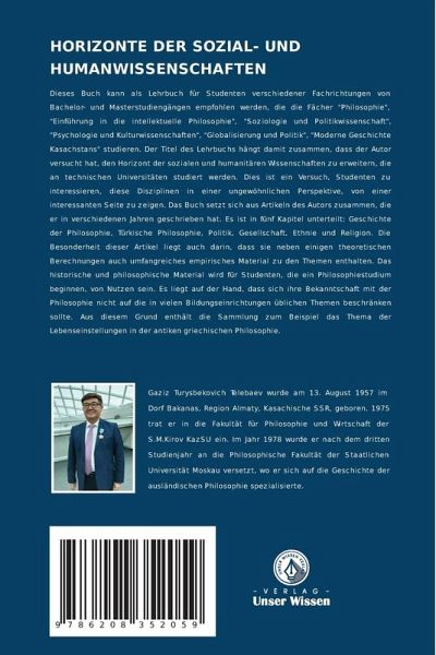 Dieses Buch kann als Lehrbuch für Studenten verschiedener Fachrichtungen von Bachelor- und Masterstudiengängen empfohlen werden, die die Fächer "Philosophie", "Einführung in die intellektuelle Philosophie", "Soziologie und Politikwissenschaft", "Psychologie und Kulturwissenschaften", "Globalisierung und Politik", "Moderne Geschichte Kasachstans" studieren. Der Titel des Lehrbuchs hängt damit zusammen, dass der Autor versucht hat, den Horizont der sozialen und humanitären Wissenschaften zu erweitern, die an technischen Universitäten studiert werden. Dies ist ein Versuch, Studenten zu interessieren, diese Disziplinen in einer ungewöhnlichen Perspektive, von einer interessanten Seite zu zeigen. Das Buch setzt sich aus Artikeln des Autors zusammen, die er in verschiedenen Jahren geschrieben hat. Es ist in fünf Kapitel unterteilt: Geschichte der Philosophie, Türkische Philosophie, Politik, Gesellschaft, Ethnie und Religion. Die Besonderheit dieser Artikel liegt auch darin, dass sie neben einigen theoretischen Berechnungen auch umfangreiches empirisches Material zu den Themen enthalten. Das historische und philosophische Material wird für Studenten, die ein Philosophiestudium beginnen, von Nutzen sein. Es liegt auf der Hand, dass sich ihre Bekanntschaft mit der Philosophie nicht auf die in vielen Bildungseinrichtungen üblichen Themen beschränken sollte. Aus diesem Grund enthält die Sammlung zum Beispiel das Thema der Lebenseinstellungen in der antiken griechischen Philosophie.