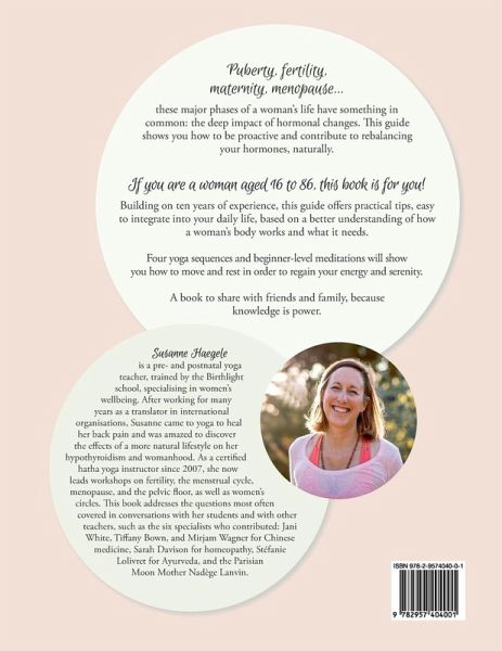 Puberty, fertility, maternity, menopause... these major phases of a woman's life have something in common: the deep impact of hormonal changes. This book shows you how to be proactive and contribute to rebalancing your hormones, naturally. If you are a woman aged 16 to 86 and you think that... you would like to know your body better, hormones are important (but you're not quite sure why), period pain is "just a fact of life", menopause equals suffering, the vagina and the vulva are the same thing, you have no time (or no money) for self-care, a wellness break is a glass of wine while watching TV, peeing when you sneeze can't be helped, nobody understands what you are going through, you'll have time to sleep when you are retired, women's circles are for hippies and witches, constipation has nothing to do with sexuality... then you'll definitely benefit from reading this book! Building on ten years of experience, this guide offers practical tips, easy to integrate into your daily life, based on a better understanding of how a woman's body works and what it needs. Four yoga sequences and beginner-level meditations will show you how to move and rest in order to regain your energy and serenity. A book to share with friends and family, because knowledge is power!