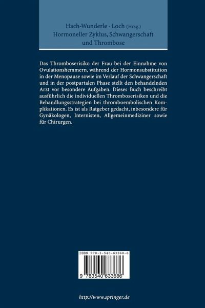 Die medikamentöse Thromboembolie-Prophylaxe ist ein fester Bestandteil in der inneren und operativen Medizin und spielt eine wesentliche Rolle auch in der Frauenheilkunde. Das vorliegene Buch diskutiert ausführlich die Zusammenhänge und physiologischen Abläufe von hormonellem Zyklus und Blutgerinnung. Individuelle Risiken einer Thrombose bei Ovulationshemmung, Schwangerschaft und in der Menopause werden in verschiedenen Beiträgen beschrieben. Dieses Buch dient damit zur Weiterbildung für Internisten und Gynäkologen, beantwortet zahlreiche Fragen und steht dem klinisch tätigen Arzt als täglicher Ratgeber zur Verfügung. Das Thromboserisiko der Frau bei der Einnahme von Ovulationshemmern, während der Hormonsubstitution in der Menopause sowie im Verlauf der Schwangerschaft und in der postpartalen Phase, stellt den behandelnden Arzt vor besondere Aufgaben. Dieses Buch beschreibt ausführlich die individuellen Thromboserisiken und die Behandlungsstrategien bei thromboembolischen Komplikationen. Es ist somit als Ratgeber gedacht, insbesondere für Gynäkologen, Internisten, Allgemeinmediziner sowie für Chirurgen.