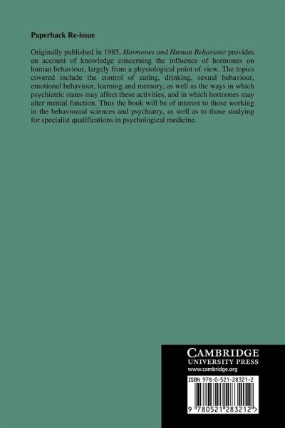 Originally published in 1985, Hormones and Human Behaviour provides an account of knowledge concerning the influence of hormones on human behaviour, largely from a physiological point of view. The topics covered include the control of eating, drinking, sexual behaviour, emotional behaviour, learning and memory, as well as the ways in which psychiatric states may affect these activities, and in which hormones may alter mental function. Thus the book will be of interest to those working in the behavioural sciences and psychiatry, as well as to those studying for specialist qualifications in psychological medicine.