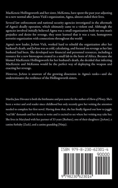 MacKenzie Hollingsworth and her sister, McKenna, have spent the past year adjusting to a new normal after James Vick's organization, Agma, almost ended their lives. Several law enforcement and national security agencies investigated in the aftermath of Agma's deadly operation, which ultimately came to a violent end. Although the agencies involved initially believed Agma was a small organization built on one man's prejudice and desire for revenge, they soon learned that it was a vast, homegrown terrorist organization with connections throughout the world. Agma's new leader, JoAnn Vick, worked hard to rebuild the organization after her husband's death, and JoAnn was as cold, calculating, and focused on revenge as her late husband had been. She developed new financial and personnel resources, including a resource for a new bioweapon created in a small lab in the horn of Africa. Because she blamed MacKenzie Hollingsworth for her husband's death, she decided that infecting MacKenzie and McKenna would be the perfect way of deploying the weapon and exacting her revenge. However, JoAnn is unaware of the growing dissension in Agma's ranks-and she underestimates the resilience of the Hollingsworth sisters.