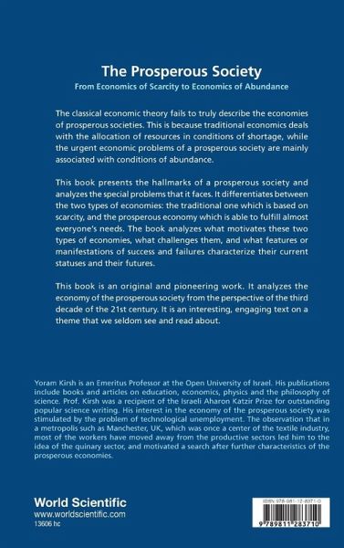 The classical economic theory fails to truly describe the economies of prosperous societies. This is because traditional economics deals with the allocation of resources in conditions of shortage, while the urgent economic problems of a prosperous society are mainly associated with conditions of abundance. This book presents the hallmarks of a prosperous society and analyzes the special problems that it faces. It differentiates between the two types of economies: the traditional one which is based on scarcity, and the prosperous economy which is able to fulfill almost everyone's needs. The book analyzes what motivates these two types of economies, what challenges them, and what features or manifestations of success and failures characterize their current statuses and their futures. This book is an original and pioneering work. It analyzes the economy of the prosperous society from the perspective of the third decade of the 21st century. It is an interesting, engaging text on a theme that we seldom see and read about.