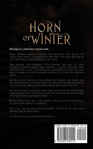 Revenge is a dish best served cold... When Bethany Aodhán, resident-and reluctant-relic hunter for Deva's Fae Council, is assigned her next task, little does she realize just how many unwanted ghosts it will raise. The missing relic-Borrhás's Horn-enables the user to raise elements of winter against their enemies. It quickly becomes clear that the Horn is now in the hands of a powerful witch who has very specific targets in mind-everyone involved in the hunt for Agrona's Claws. As the attacks intensify, and buildings-and people-are frozen and destroyed, Bethany and Mathi Dh¿r-Val, her Elven handler and friend, race to uncover who is behind the attacks and reclaim the Horn. But the threads of treachery loom closer than either of them realize, weaving around the pixie who pursues her romantically and the dark elf king she wants but cannot have. As the attacks grow ever more violent, it becomes clear that Bethany is now in their enemy's crosshairs Can they find the Horn and its wielder in time to not only save Bethany, but an entire city? Or will winter's icy embrace take them all?