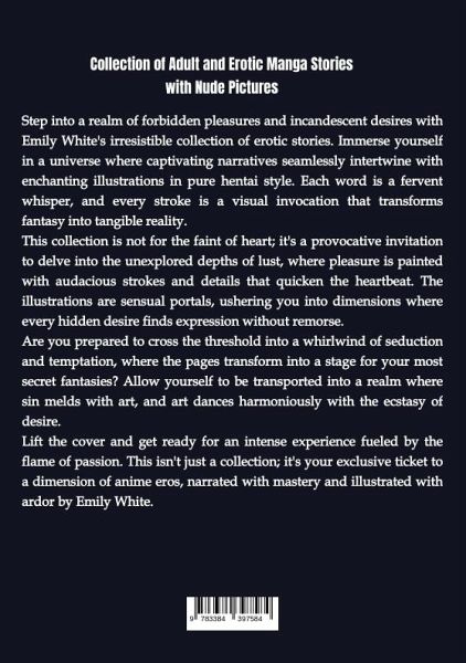 Indulge in an Unforgettable Journey of Passion and Temptation with Emily White's Erotic Masterpiece!Step into a captivating world where seduction knows no bounds in Emily White's latest collection of scintillating erotic stories, enriched with enchanting hentai illustrations. Immerse yourself in a universe where each word is a whispered promise, and every brushstroke is a visual enchantment that brings fantasies to life in pure hentai style.This collection is a daring invitation to explore the uncharted depths of desire, where pleasure unfolds with audacious strokes and details that will quicken your heartbeat. The carefully crafted hentai illustrations serve as sensuous portals, transporting you into dimensions where every hidden fantasy finds unabashed expression.What to Expect:- A Fusion of Literary Mastery and Sensual Artistry- Explicit and Alluring Hentai Illustrations- Stories That Explore the Boundaries of Lust and Fantasy- A Whirlwind of Seduction and TemptationThis isn'tjust a collection; it's your exclusive ticket to a dimension of hentai eros, meticulously narrated and ardently illustrated by Emily White. Lift the cover and prepare for an intense experience fueled by the flame of passion.Caution: This Collection is Not for the Faint of Heart. Are You Ready to Cross the Threshold?