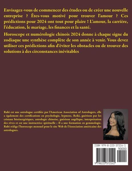 Envisagez-vous de commencer des études ou de créer une nouvelle entreprise ? Êtes-vous motivé pour trouver l'amour ? Ces prédictions pour 2024 ont tout pour plaire ! L'amour, la carrière, l'éducation, le mariage, les finances et la santé. Horoscope et numérologie chinois 2024 donne à chaque signe du zodiaque une synthèse complète de son année à venir. Vous devez utiliser ces prédictions afin d'éviter les obstacles ou de trouver des solutions à des circonstances inévitables.