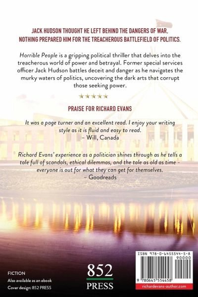 Horrible People is a gripping political thriller delving into treacherous world of power and betrayal. Former SAS officer Jack Hudson battles deceit and danger navigating the murky waters of politics, uncovering the dark arts of corruption.