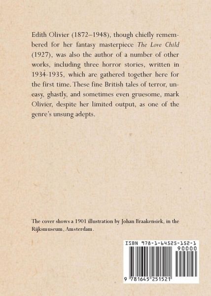 Edith Olivier (1872-1948), though chiefly remembered for her fantasy masterpiece The Love Child (1927), was also the author of a number of other works, including three horror stories, written in 1934-1935, which are gathered together here for the first time. These fine British tales of terror, uneasy, ghastly, and sometimes even gruesome, mark Olivier, despite her limited output, as one of the genre's unsung adepts.