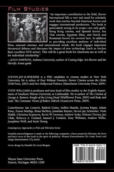 As global cinema becomes increasingly difficult to distinguish, characterizations of horror films from various geographical and cultural locations seem more fluid and transitional than ever before. However, this does not mean denying the existence of national features that affect and are reflected in horror films, whether from an artistic or a reception standpoint. Horror is one of the most studied genres in cinema, yet none of the many books on the subject focus on films or traditions outside the United States or the United Kingdom. While Italian, Japanese, Mexican, German, and Hong Kong horror films have received a modicum of critical recognition, the areas of Egyptian, Romanian, Belgian, Dutch, New Zealand, and Thai horror all still need—in fact, demand—some attention. Horror International seeks to rectify this by giving the global perspectives and cross-cultural dynamics of world horror cinema its due. This groundbreaking collection of eighteen original essays examine a myriad of films, showing how each draws from Hollywood horror conventions and also local cinematic traditions, local folklore, and national historical and cultural concerns. The production, marketing, and reception of various national cinemas are also addressed, demonstrating how these films are understood by different audiences worldwide. This in turn sheds new light on the original cultural production of many works and their subsequent "translations" and meanings in different national contexts. The diverse and highly informative essays in Horror International will engross both scholars and fans of horror films and finally illuminate the distinct multicultural factors of this exciting cinematic genre.