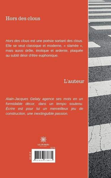 Hors des clous est une poésie sortant des clous. Elle se veut classique et moderne, « slamée », mais aussi drôle, érotique et ardente, plaquée au subtil désir d¿être euphonique.