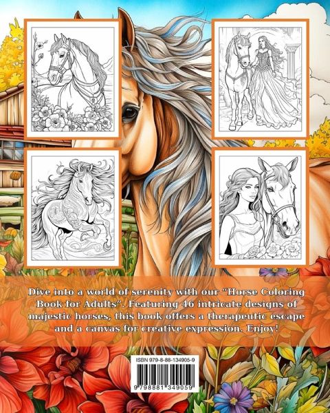 Embark on a journey into the captivating realm of equine wonder with our "Equine Elegance: A Coloring Experience for Horse Enthusiasts." Immerse yourself in the artistry of our carefully curated blend of realistic and imaginative coloring pages, designed to captivate the hearts of both adults and teens. This enchanting coloring book promises a therapeutic escape, offering a perfect balance of lifelike horse illustrations and whimsical depictions to set your creativity free. Whether you seek a moment of relaxation or a channel for your artistic spirit, "Equine Elegance" is the ideal companion for those who cherish the grace and majesty of these magnificent creatures. Indulge in the intricate details of our thoughtfully crafted pages, celebrating the diversity of horses in all their forms. Unleash your imagination and bring these stunning equine creations to life with your personal touch. Gift the joy of artistic expression to the horse lover in your life with "Equine Elegance," a coloring experience that pays homage to the beauty and charm of horses.