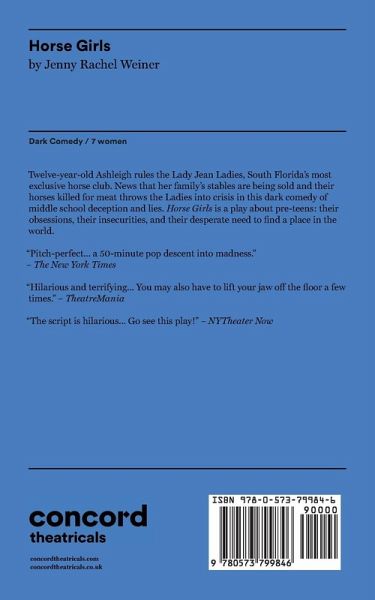"Twelve-year-old Ashleigh rules the Lady Jean Ladies, South Florida's most exclusive horse club. News that her family's stables are being sold and their horses killed for meat throws the Ladies into crisis in this dark comedy of middle school deception and lies. Horse Girls is a play about pre-teens: their obsessions, their insecurities, their desperate need to find a place in the world."--Page 4 of cover.