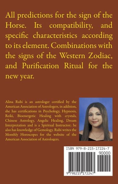 All predictions for the sign of the Horse. Its compatibility, and specific characteristics according to its element. Combinations with the signs of the Western Zodiac, and Purification Ritual for the new year.