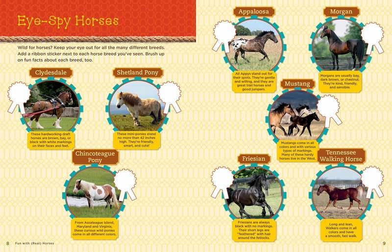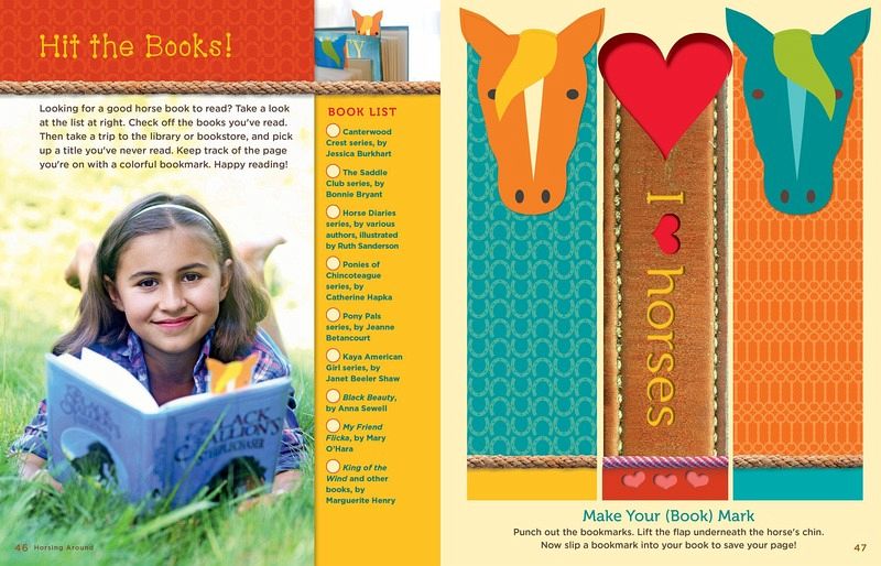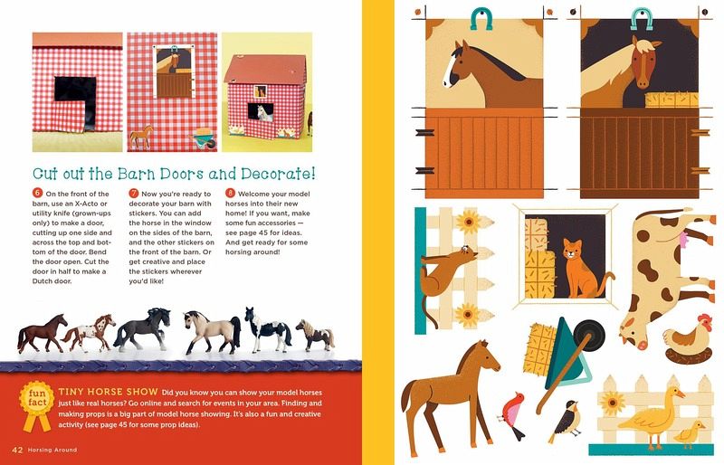 1: Fun with (Real) Horses Horse Trivia Time Eye-Spy Horses Parts of a Horse Hanging around Horses Saddle Up in Style 2: Creative Crafts Pony Pillow Happy Hobbyhorse Horsey Hangers Horseshoe Art Pony Poster Painted Pasture 3: Horsing Around Doodle Dandy Horse Show Braids Barn-in-a-Box Hit the Books! Design a Dream Horse My Favorite Things 4: Horse Party Time! Pony Party Plan Wild Word Game Filly Flicks Saddle Up Straws Party Grub Cowgirl Cupcakes