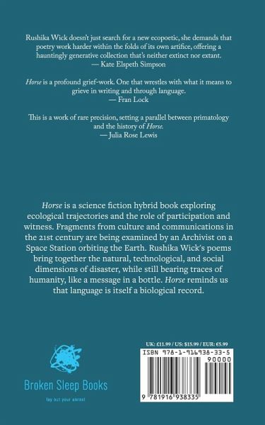 Horse explores ecological trajectories and the role of participation and witness. Fragments from culture and communications in the 21st century are being examined by an Archivist on a Space Station orbiting the Earth.