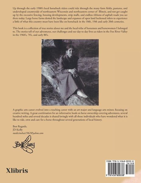 Up through the early 1980's local horseback riders could ride through the many farm fields, pastures, and undeveloped countryside of northern Illinois and Wisconsin, and not get caught up by the excessive fencing, housing developments, strip malls, and endless ribbons of asphalt roads you see there today. Large horse farms dotted the landscape and expanses of open land beckoned riders to experience a little of what this country must have been like on horseback in the 18th, 19th and early 20th centuries. This book is a collection of true stories about me and the local tribe of horsemen and horsewomen I belonged to. The stories tell of our adventures, our challenges and our day to day lives as riders in the Fox River Valley in the 1960's, 70's, and early 80's.