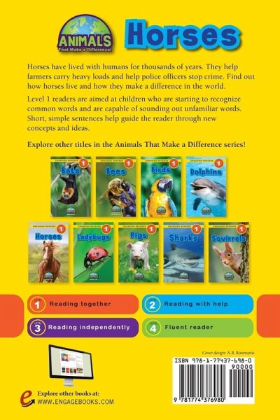 Horses have lived with humans for thousands of years. They help farmers carry heavy loads and help police officers stop crime. Find out how horses live and how they make a difference in the world. Level 1 readers are aimed at children who are starting to recognize common words and are capable of sounding out unfamiliar words. Short, simple sentences help guide the reader through new concepts and ideas.