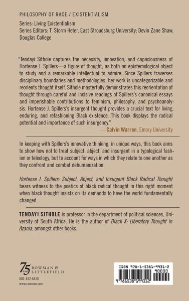This book aims to show, in unique ways, in keeping with Spillers's innovative thinking, how not to treat subject, abject, and insurgent in a typological fashion, or teleology, but to account for ways in which, in their distinctive forms, also related to one another as they confront and combat dehumanization.Hortense J. Spillers: Subject, Abject, and Insurgent Black Radical Thought bears witness to the poetics of black radical thought in this right moment when black thought insists on its demands to have the world fundamentally changed.