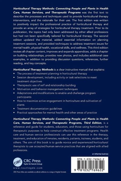 Horticultural Therapy Methods: Connecting People and Plants in Health Care, Human Services, and Therapeutic Programs describes the processes and techniques used to provide horticultural therapy interventions, and the rationale for their use.
