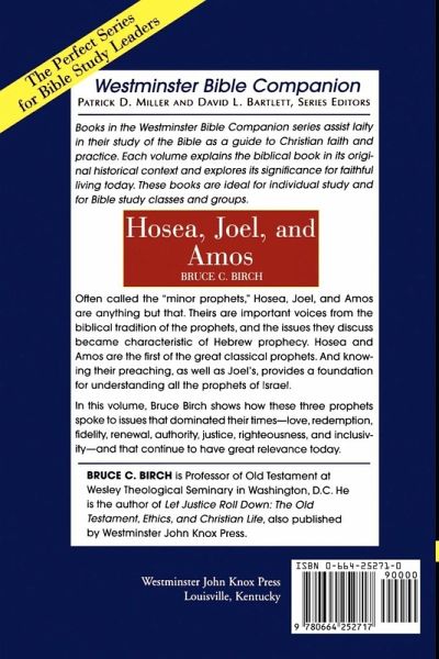 Often called the "minor prophets", Hosea, Joel, and Amos are anything but that. Theirs are important voices from the biblical tradition of the prophets, and the issues they discuss became characteristic of Hebrew prophecy. Hosea and Amos are the first of the great classical prophets. And knowing their preaching, as well as Joel's, provides a foundation for understanding all the prophets of Israel. In this volume, Bruce Birch shows how these three prophets spoke to issues that dominated their times - love, redemption, fidelity, renewal, authority, justice, righteousness, and inclusivity - and that continue to have great relevance today.