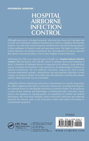 Airborne Nosocomial Infections. Airborne Nosocomial Epidemiology. Hospital Aerobiology. Airborne Nosocomial Microorganisms. Airborne Nosocomial Etiology. Hospital Facilities. Ventilation and Dilution. Air Filtration. Hospital Disinfection. Hand Hygiene. Respiratory Infections. Surgical Site Infections. ICUs and Patient Rooms. Pediatric Nosocomial Infections. Immunocompromised and Burn Wound Infections. Nursing Homes. Procedural Controls and Guidelines. Air and Surface Sampling. UVGI Air Disinfection. UVGI Surface Disinfection. Alternative Air Cleaning Technologies. Appendix: Database of Airborne Nosocomial Pathogens. Index.