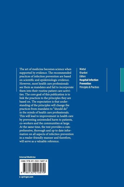The art of medicine becomes science when supported by evidence. The recommended practices of infection prevention are based on scientific and epidemiologic evidence. However, most health care professionals see them as mandates and fail to incorporate them into their routine patient care activities. The core goal of this publication is to link the practices to the principles they are based on. The expectation is that understanding of the principles will change the practices from mandates to "should do" in the minds of health care professionals. This will lead to improvement in health care by…mehr