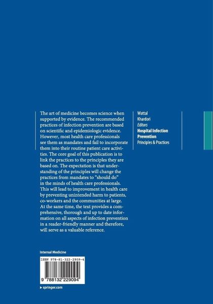 The art of medicine becomes science when supported by evidence. The recommended practices of infection prevention are based on scientific and epidemiologic evidence. However, most health care professionals see them as mandates and fail to incorporate them into their routine patient care activities. The core goal of this publication is to link the practices to the principles they are based on. The expectation is that understanding of the principles will change the practices from mandates to "should do" in the minds of health care professionals. This will lead to improvement in health care by…mehr