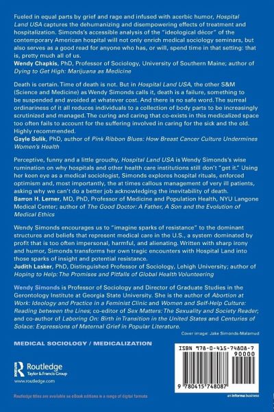 In Hospital Land USA, Wendy Simonds analyzes the wide-reaching powers of medicalization: the dynamic processes by which medical authorities, institutions, and ideologies impact our everyday experiences, culture, and social life. Simonds documents her own Hospital Land adventures and draws on a wide range of U.S. cultural representations - from memoirs to medical mail, from hospital signs to disaster movies - in order to urge critical thinking about conventional notions of care, health, embodiment, identity, suffering, and mortality.¿ This book is intended for general readers, medical practitioners, undergraduate and graduate students in courses on medical sociology, medicine, medical ethics, nursing, public health, carework, visual culture, cultural studies, and gerontology.