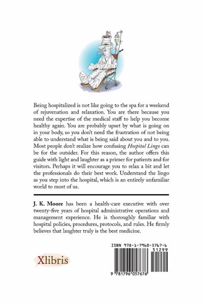 Being hospitalized is not like going to the spa for a weekend of rejuvenation and relaxation. You are there because you need the expertise of the medical staff to help you become healthy again. You are probably upset by what is going on in your body, so you don't need the frustration of not being able to understand what is being said about you and to you. Most people don't realize how confusing Hospital Lingo can be for the outsider. For this reason, the author offers this guide with light and laughter as a primer for patients and for visitors. Perhaps it will encourage you to relax a bit and let the professionals do their best work. Understand the lingo as you step into the hospital, which is an entirely unfamiliar world to most of us.
