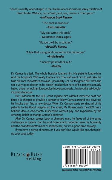 Dr. Camus is a jerk. The whole hospital loathes him. His patients loathe him. And the hospital's CEO really loathes him. The staff want him to just take the blue pill from The Matrix and wake up to reality-or is it the green pill? He's also not a very good doctor, as he doesn't realize that none of his patients actually have... pneumonoultramicroscopicsilicovolcanoniosis... his favorite Wikipedia- inspired diagnosis. But Rosencrantz the CEO can't replace him without immense cost and time; it is cheaper to provide a censor to follow Camus around and cover up his insults than find a new doctor. When Dr. Camus starts sending all of his patients to the Good Hospital up the street, Mr. Rosencrantz the CEO has a brilliant idea-a one-month suspension without pay, and hypnotism by the Amazing Ralph to change Camus's behavior. After Dr. Camus comes back a changed man, he faces all of the same challenges as before. Can he and Rosencrantz together save his humanity and the hospital's bottom line? Probably not, but it's a good time anyway. If you have a sense of humor, or if you don't but would like one, then pick up your copy today!