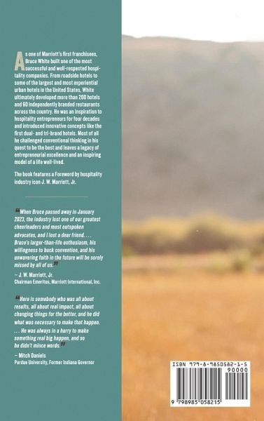 As one of Marriott's first franchisees, Bruce White built a highly successful and widely respected hospitality company. From roadside hotels to some of the largest and most experiential urban hotels in the United States, White's visionary leadership led to the development of over 200 hotels and 60 independently branded restaurants across the country. For four decades, he inspired hospitality entrepreneurs, introducing groundbreaking concepts such as the first dual- and tri-brand hotels. White's relentless pursuit of excellence and willingness to challenge conventional thinking set new industry standards, leaving behind a legacy of innovation, entrepreneurship, and a life well-lived. This book features a Foreword by hospitality industry icon J.W. Marriott, Jr., highlighting White's profound impact on the industry.