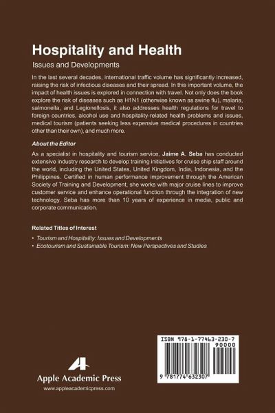 This title includes a number of Open Access chapters. In the last several decades, international traffic volume has significantly increased, raising the risk of infectious diseases and their spread. In this important volume, the impact of health issues is explored in connection with travel. Not only does the book explore the risk of diseases such as H1N1 (otherwise known as swine flu), malaria, salmonella, and Legionellosis, it also addresses health regulations for travel to foreign countries, alcohol use and hospitality-related health problems and issues, medical tourism (patients seeking…mehr