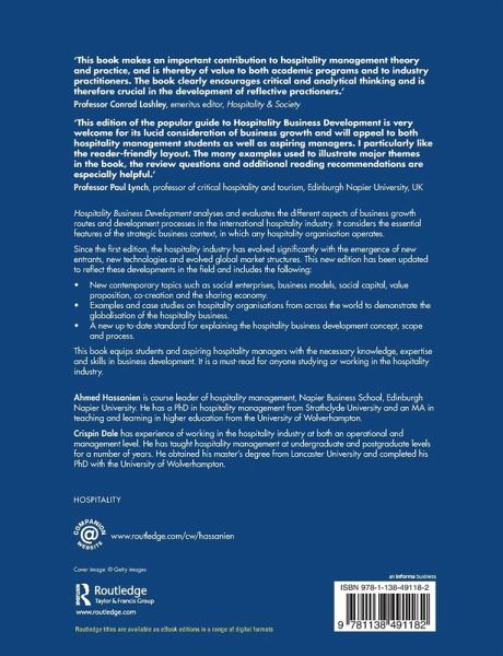 Hospitality Business Development analyses and evaluates the different aspects of business growth routes and development processes in the international hospitality industry. It considers the essential features of the strategic business context, in which any hospitality organisation operates.