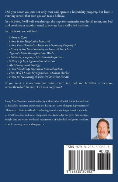 Did you know you can not only own and operate a hospitality property, but have it running so well that even you can take a holiday? In this book, I will walk you through the steps to systematize your hotel, resort, inn, bed and breakfast or vacation rental to operate like a well-oiled machine. You will find:Where to Start What Is The Hospitality Industry? What Does Hospitality Mean for Hospitality Property's? History of The Hotel Industry - How We Got Here Types of Hotels Throughout the World Hospitality Property Departments-Definitions Setting Up My Organization Structure My Management Strategy What Should My Operation Manual Include How Will I Know My Operations Manual Works? What is Outsourcing & How It Can Work For Me After completing this book, you will have the tools to turn your hospitality property into a business envied by your competitors, respected by your employees, and appreciated by your guests. If you want a smooth-running hotel, resort, inn, bed and breakfast or vacation rental then don't hesitate.