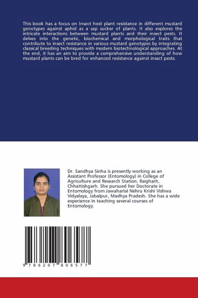 This book has a focus on Insect host plant resistance in different mustard genotypes against aphid as a sap sucker of plants. It also explores the intricate interactions between mustard plants and their insect pests. It delves into the genetic, biochemical and morphological traits that contribute to insect resistance in various mustard genotypes by integrating classical breeding techniques with modern biotechnological approaches. At the end, it has an aim to provide a comprehensive understanding of how mustard plants can be bred for enhanced resistance against insect pests.