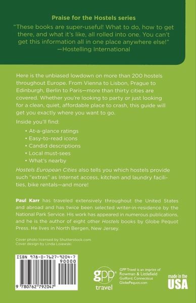The Only Comprehensive, Unofficial, Opinionated Guide * Praise for the Hostels series "These books are super-useful! What to do, how to get there, and what it's like, all rolled into one. You can’t get this information all in one place anywhere else!" -Hostelling International * Here is the unbiased lowdown on more than 200 hostels throughout Europe. From Vienna to Lisbon, Prague to Edinburgh, Berlin to Paris—more than thirty cities are covered. Whether you’re looking to party or just looking for a clean, quiet, affordable place to crash, this guide will get you exactly where you want to go. Inside you’ll find: - At-a-glance ratings - Candid descriptions - Local Must-sees - What’s nearby Hostels European Cities also tells you which hostels provide such “extras” asInternet access, kitchen and laundry facilities, bike rentals—and more! Easy-to-read icons are included for: - Attractive natural setting - Ecologically aware hostel - Superior kitchen facilities or great cafe/restaurant - Offbeat or eccentric place - Superior bathroom facilities - Romantic private rooms - Comfortable beds - A particularly good value - Wheelchair accessible - Good for business travelers - Especially well suited for families - Good for active travelers - Visual arts at hostel or nearby - Music at hostel or nearby - Great hostel for skiers - Bar or pub at hostel or nearby - Editors’ choice: among our very favorite hostels
