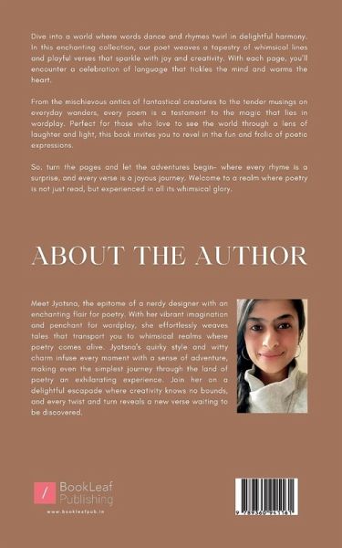 Dive into a world where words dance and rhymes twirl in delightful harmony. In this enchanting collection, our poet weaves a tapestry of whimsical lines and playful verses that sparkle with joy and creativity. With each page, you'll encounter a celebration of language that tickles the mind and warms the heart. From the mischievous antics of fantastical creatures to the tender musings on everyday wanders, every poem is a testament to the magic that lies in wordplay. Perfect for those who love to see the world through a lens of laughter and light, this book invites you to revel in the fun and frolic of poetic expressions. So, turn the pages and let the adventures begin- where every rhyme is a surprise, and every verse is a joyous journey. Welcome to a realm where poetry is not just read, but experienced in all its whimsical glory.