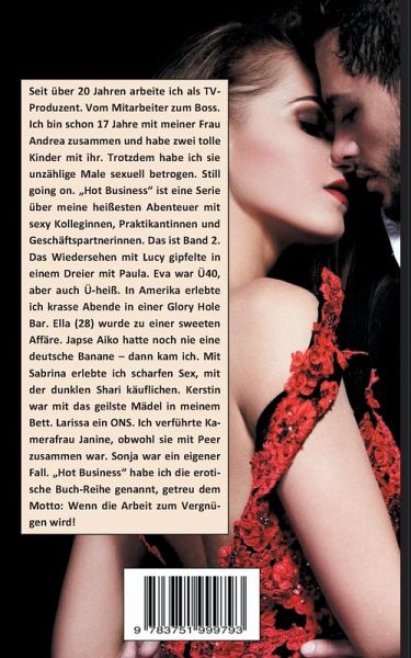 Seit über 20 Jahren arbeite ich als TV-Produzent. Vom Mitarbeiter zum Boss. Ich bin schon 17 Jahre lang mit meiner Ehefrau Andrea zusammen und habe zwei tolle Kinder mit ihr. Trotzdem habe ich sie unzählige Male sexuell betrogen. Still going on. "Hot Business" ist eine Serie über meine heißesten Abenteuer mit sexy Kolleginnen, Praktikantinnen und Geschäftspartnerinnen. Das ist Band 2. Das Wiedersehen mit Lucy gipfelte in einem Dreier mit Paula. Eva war Ü40, aber auch Ü-heiß. In Amerika erlebte ich krasse Abende in einer Glory Hole Bar. Ella (28) wurde zu einer süßen Affäre. Japse Aiko hatte noch nie eine deutsche Banane, dann kam ich. Mit Sabrina erlebte ich scharfen Sex, mit der dunklen Shari käuflichen. Kerstin war mit das geilste Mädel in meinem Bett. Larissa ein klassischer ONS. Ich verführte Kamerafrau Janine, obwohl sie mit Peer zusammen war. Sonja war ein eigener Fall.