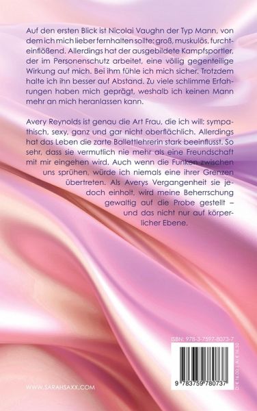 Avery Reynolds ist Ballettlehrerin, die bei ihren Schülern und Kollegen total beliebt ist. Neben ihrem freundlichen Lächeln greifen immer wieder die dunklen Schatten der Vergangenheit nach ihr und es wird rasch klar, das Averys Ängste nicht unbegründet sind. Elisa, ihre gute Freundin, die im 1. Teil ihre Geschichte erhielt, sorgt dafür, dass sich Nicolai Vaughn um Avery kümmert. Der ehemalige Soldat und ausgebildete Personenschützer, nimmt zu gerne diese Aufgabe an, denn seit er die Balletttänzerin kennengelernt hat, hat sie ihn tief berührt.