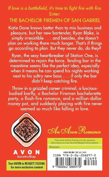Katie Dane knows better than to mix business and pleasure, but her new bartender, Ryan Blake, is simply irresistible . . . and besides, she doesn't plan on working there much longer. That's if things go according to plan. But they never do, do they? Ryan, the sexy heartbreaker of Station One, is determined to rejoin the force. Tending bar in the meantime seems like the perfect idea, especially when it means he can spend his nights working next to his sultry new boss . . . if only the bar didn't keep catching fire. Throw in a grizzled career criminal, a luscious-bodied barfly, a Bachelor Fireman bachelorette party, a flash-fire romance, and a million-dollar money pot, and suddenly playing with fire never seemed so much like falling in love.
