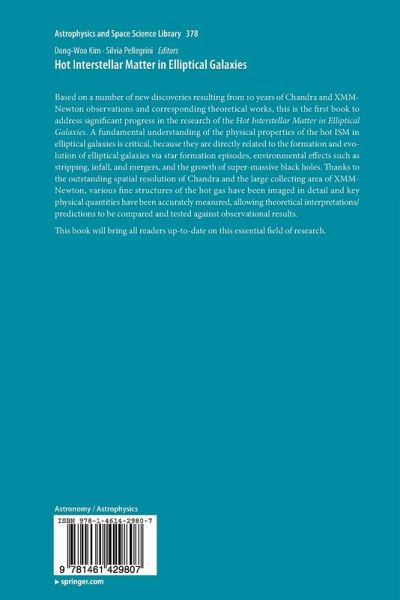 Based on a number of new discoveries resulting from 10 years of Chandra and XMM-Newton observations and corresponding theoretical works, this is the first book to address significant progress in the research of the Hot Interstellar Matter in Elliptical Galaxies. A fundamental understanding of the physical properties of the hot ISM in elliptical galaxies is critical, because they are directly related to the formation and evolution of elliptical galaxies via star formation episodes, environmental effects such as stripping, infall, and mergers, and the growth of super-massive black holes. Thanks to the outstanding spatial resolution of Chandra and the large collecting area of XMM-Newton, various fine structures of the hot gas have been imaged in detail and key physical quantities have been accurately measured, allowing theoretical interpretations/predictions to be compared and tested against observational results.